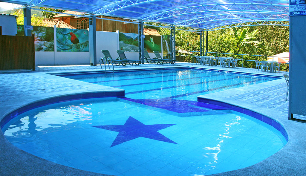 Nos complace brindarle servicios de gran calidad, agua caliente, internet inalámbrico, piscinas, sauna, turco, hidromasaje, baños de cajón, restaurante, parqueadero privado. Le atendemos con la calidez y amabilidad propia de nuestra gente. |